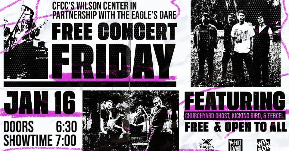 In collaboration with The Eagle's Dare, CFCC’s Wilson Center is bringing summer to Wilmington's winter slump with Free Concert Friday on January 16, 2026. Doors open at 6:30 p.m., with music beginning at 7 p.m. This FREE event is general admission and open to the public, with no tickets or reservations needed — just show up and have fun.